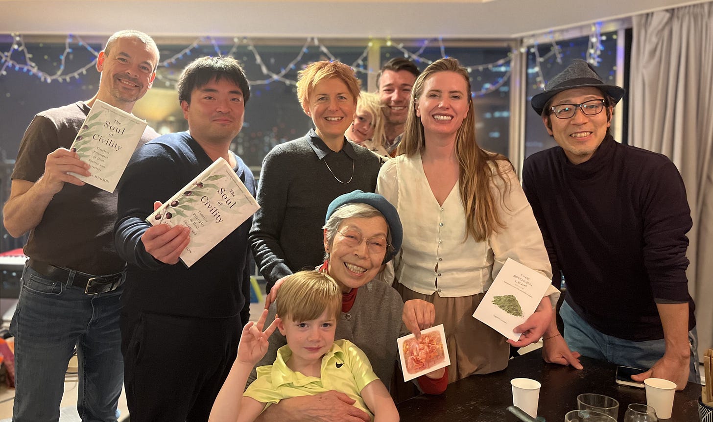 Prior to our trip, I was connected by a friend to a local Japanese organization called Community Arts Tokyo, who invited me to partner with them on an event. After recording a podcast, we gathered around a table with Japanese guests for dinner and conversation, and there I had the chance to explore more directly the distinction I have long argued for between civility and politeness.