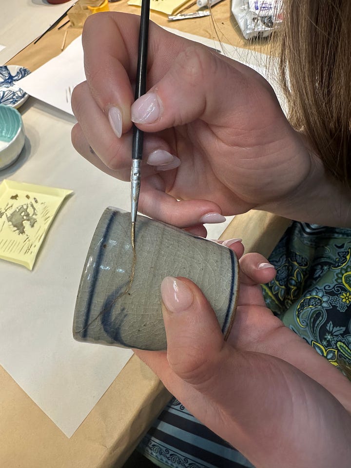 Today in Tokyo I had the privilege of taking a kintsugi class, learning an art form that dates back to 15th century Japan.